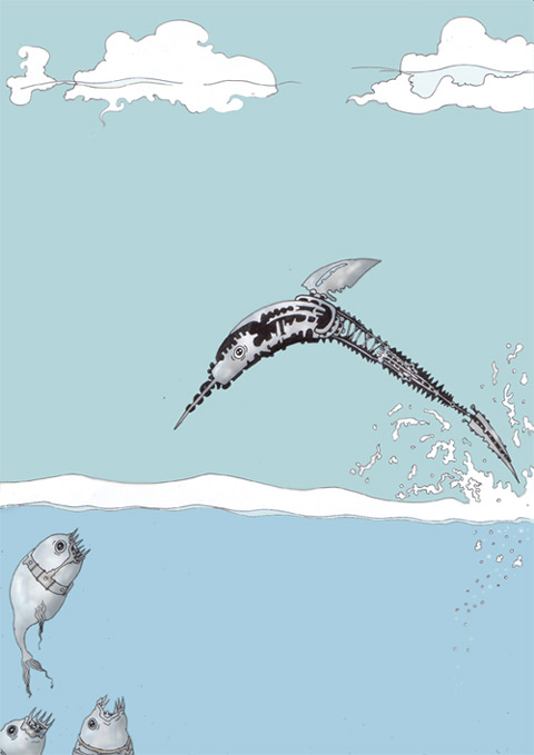 I like a lot you're lines! :-) The design on the fishes is totally cool! They’re so weird! I feel a little empty the general space but I understand in that way is this work style |